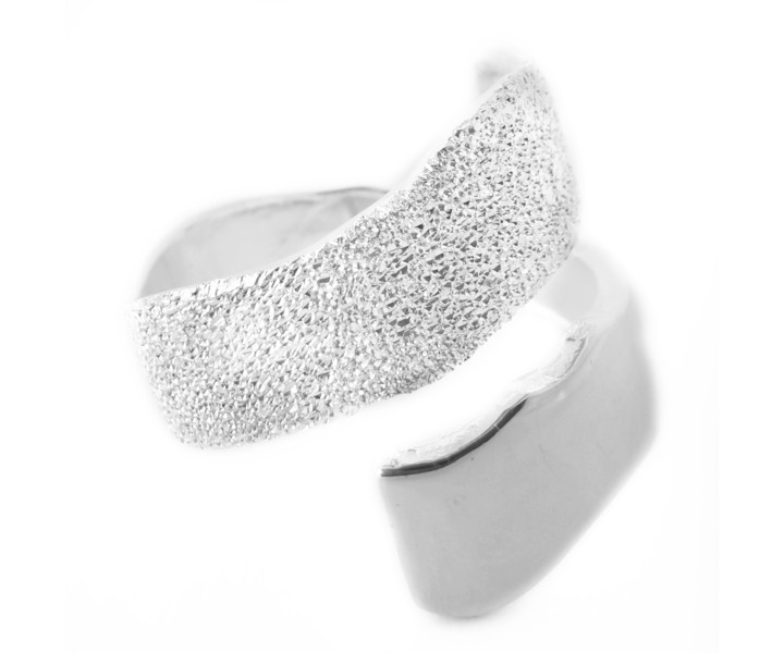 - Sormus on puoliksi timanttihiottu, puoliksi sileällä hopeapinnalla