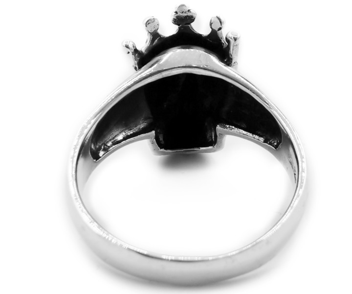 - Sormusta koristaa pääkallo, jonka päässä on upea kruunu
