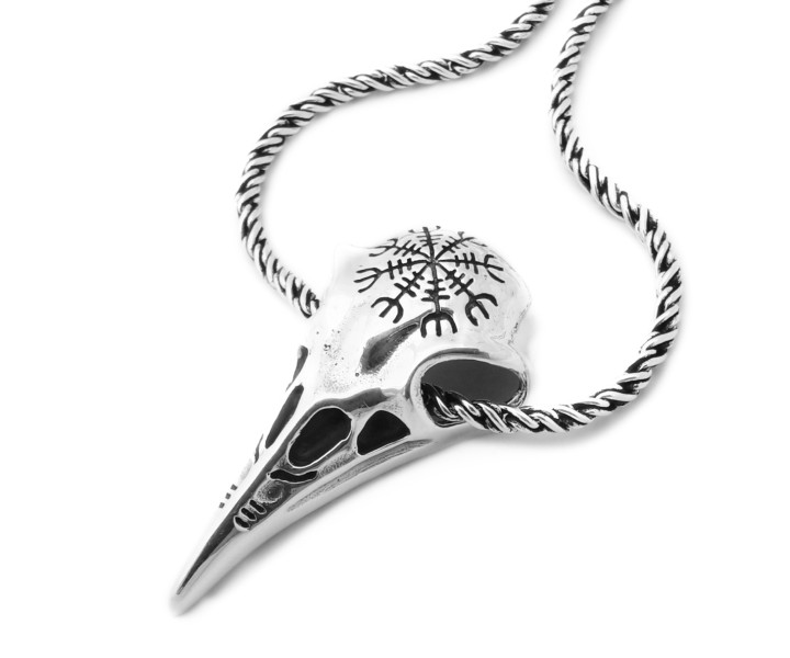 Tässä riipuksessa korpin kallossa on viikinkisymboli ''Helm of awe'', jonka uskottiin antavan kantajalleen suojaa ja voimaa taisteluissa ja jopa antavan kyvyn hallita muita ihmisiä.