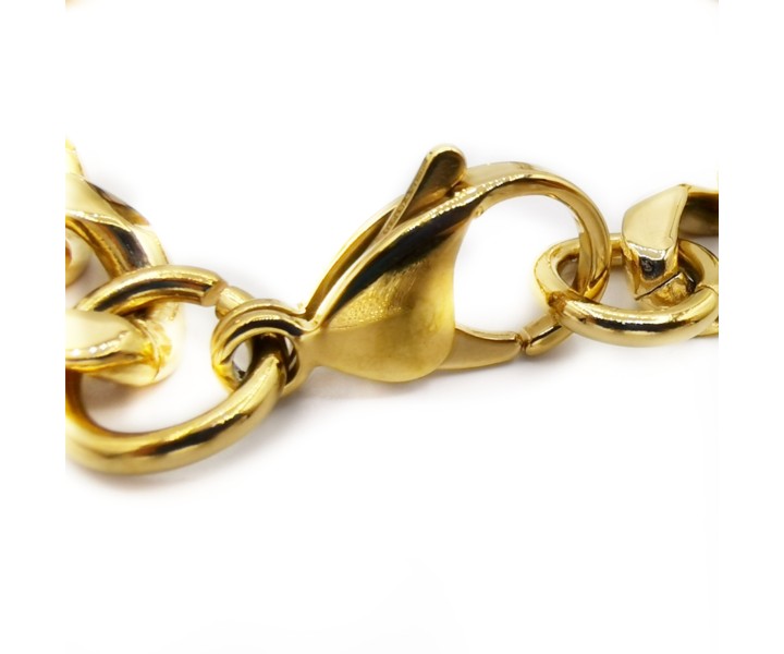 Näyttävä ja kestävä kullattu teräsketju, jota voi hyvin käyttää yksinään tai riipuksen kanssa. Saatavilla myös yhteensopiva ranneketju.