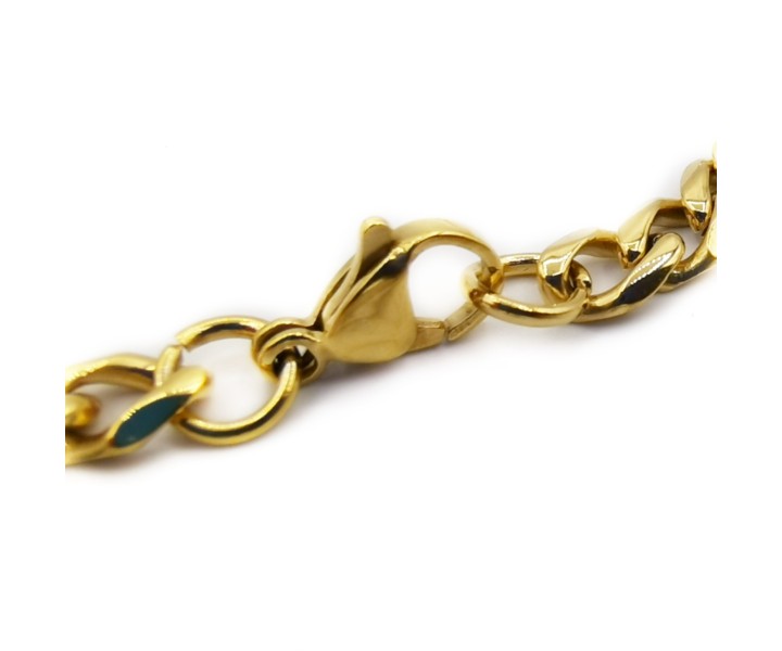 Tämä siro mutta kestävä panssariketju sopii hyvin niin naisen kuin miehenkin ranteeseen. Ketjun pinnassa on aito 18 karaatin kultaus. Saatavilla myös yhteensopiva kaulaketju.