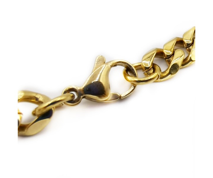 Tämä kestävä panssariketju sopii hyvin niin naisen kuin miehenkin ranteeseen. Ketjun pinnassa on aito 18 karaatin kultaus. Saatavilla myös yhteensopiva kaulaketju.