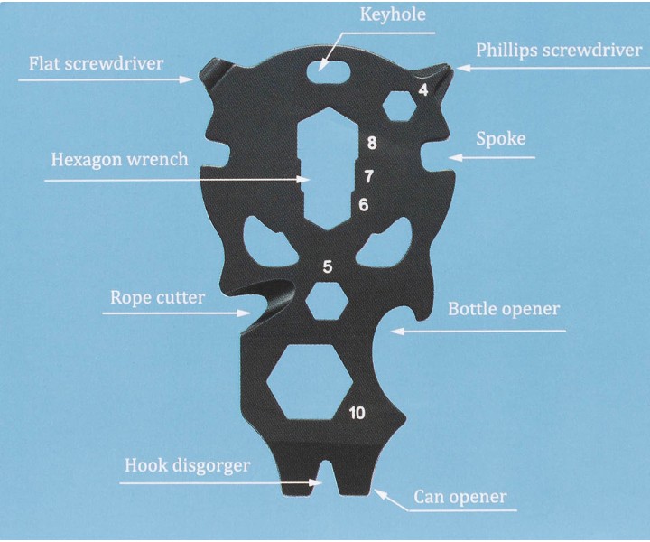 Avainsanat: monitoimityökalu, teräksinen monitoimityökalu, monitoimityökalu kaiverruksella, tökalu avaimenperä