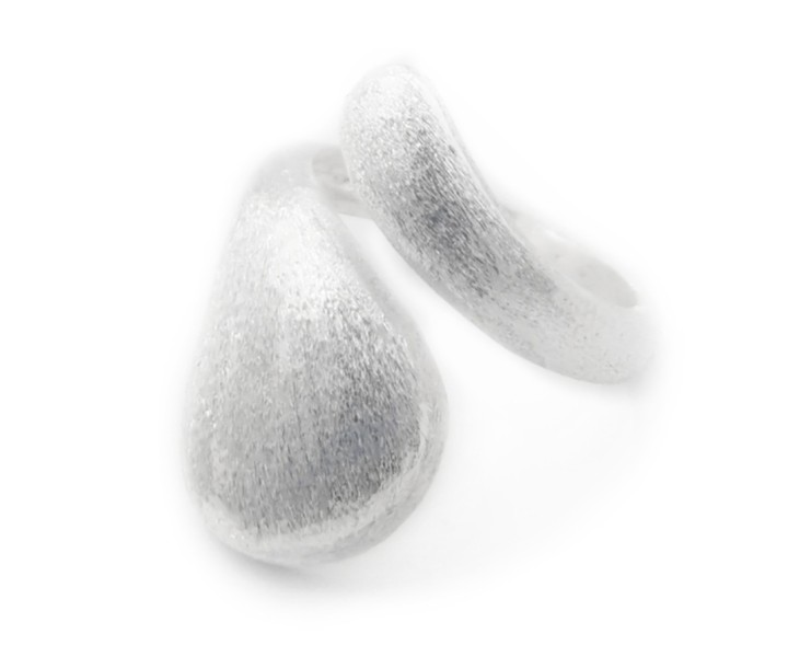 Kauniisti muotoiltu ja sormessa miellyttävän tuntuinen sormus on harjattu kauniin vaaleaksi ja valossa hohtavaksi.