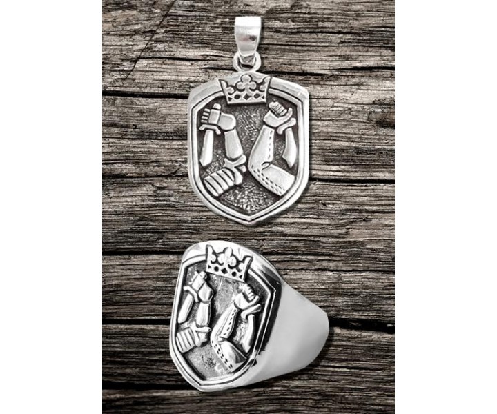 Karjalan vaakunan malli on peräisin jopa 1550-luvulta. Vaakunan kruunu kuvaa Karjalaa, josta länsi ja itä, miekka ja sapeli, taistelevat.