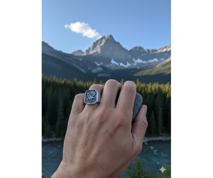 Avainsanat: Kotka - Hopeinen kantasormus, 1096, Miesten hopeasormukset, kotkasormus, hopeinen kotkasormus