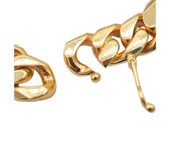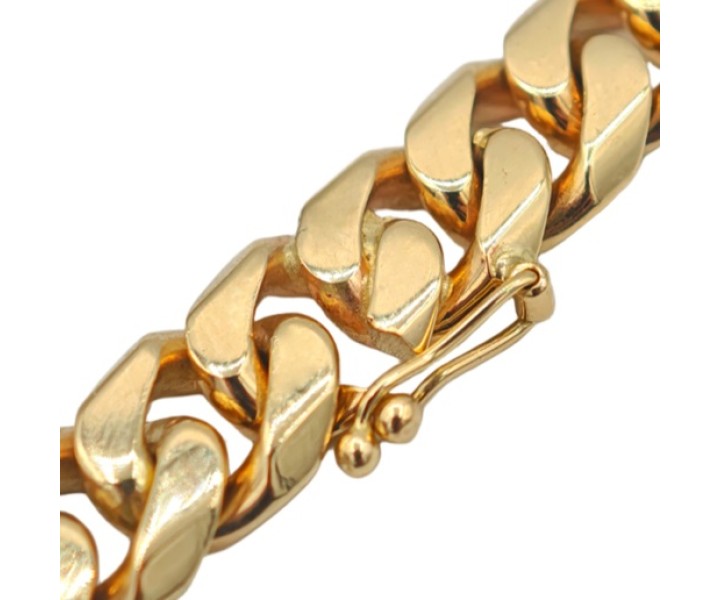 14-karaatin kultainen näyttävä ja painava panssariketju umpikultaa. Jos haluat oikeasti arvokkaan ketjun, tässä on sinulle sellainen. Ketju valmistetaan tilauksesta juuri haluamasi pituisena, Ketjussa on lukko, joka ei pääse aukeamaan vahingossa. Ketjun päätylenkki pujotetaan kapeimmasta kohdastaan vastakkaisessa päädyssä olevan lenkin aukosta ja asetetaan oikeaan asentoon. Lenkki ei ketjun kaulassa ollessa pääse tähän asentoon itsestään, joten ketju ei voi aueta vahingossa. Lisävarmuutena on kuitenkin vielä varmistushakanen, mikä tekee ketjun turvallisesta käytöstä vielä varmemman.