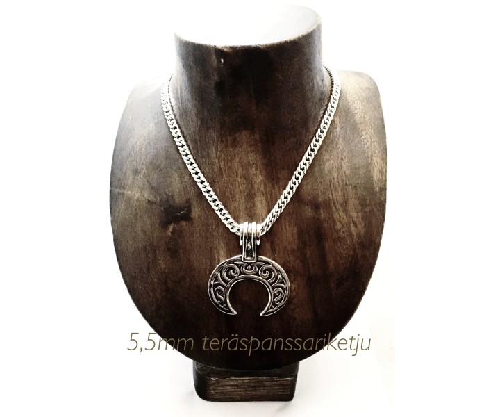 Avainsanat: Lunula, viikinkikoru, halpa viikinkikoru, edullinen koru, korumetallikoru, riimukirjoitusriipus, riimukirjoituskoru, viikinkiriipus, vegvisir, vegvisirkoru, vegvisirriipus, kompassikoru, kompassiriipus, kuunsirppi, kuunsirppikoru, hedelmällisyyskoru, kuunsirppiriipus, sirppiriipus, naiseusriipus, hedelmällisyysriipus, kasvuriipus