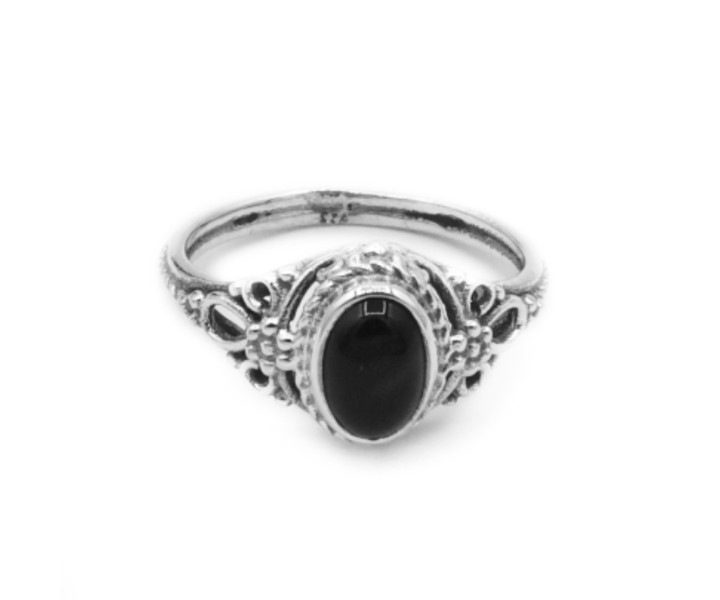 Onyksi - Hopeasormus