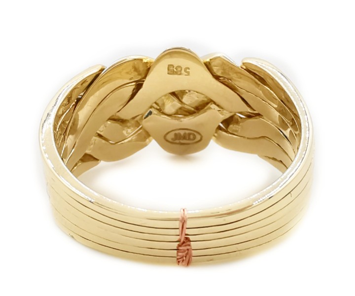 - Sormuksessa suomalainen nimileima ja 585-pitoisuusleima.