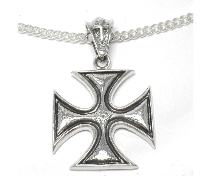 Rautaristi-kaulakoruun kuuluu iso rautaristiriipus sekä panssariketju.