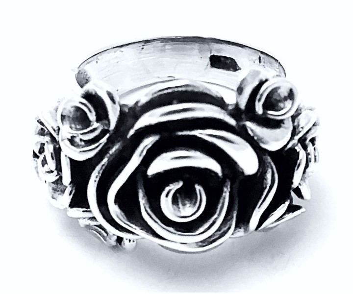 Avainsanat: kukkasormus, hopeakukka, hopeinenkukkasormus, kalevalasormus, patinoitu sormus, hopeasormus, ruususormus, hopearuusu