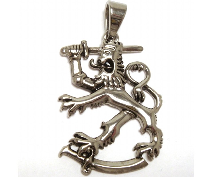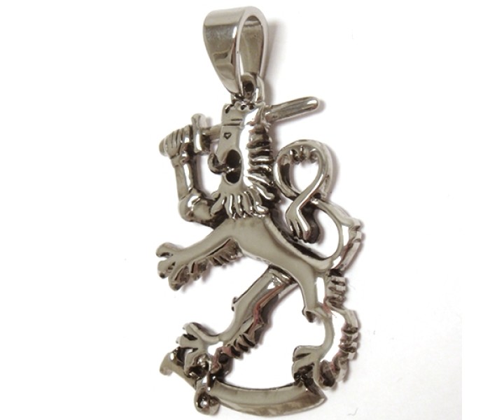 - Teräksinen suomileijona-riipus kestää kovaakin käyttöä.