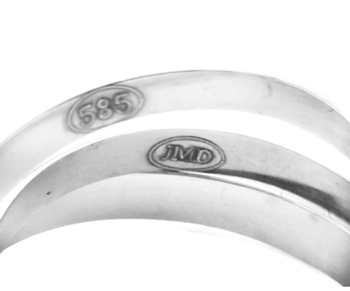 - Sormuksessa pitoisuusleima 585 ja suomalainen nimileima